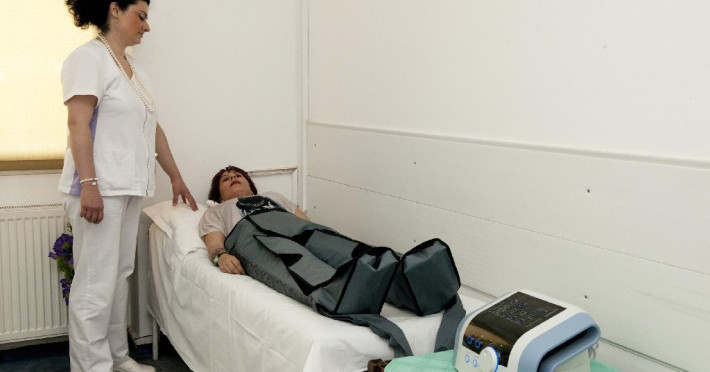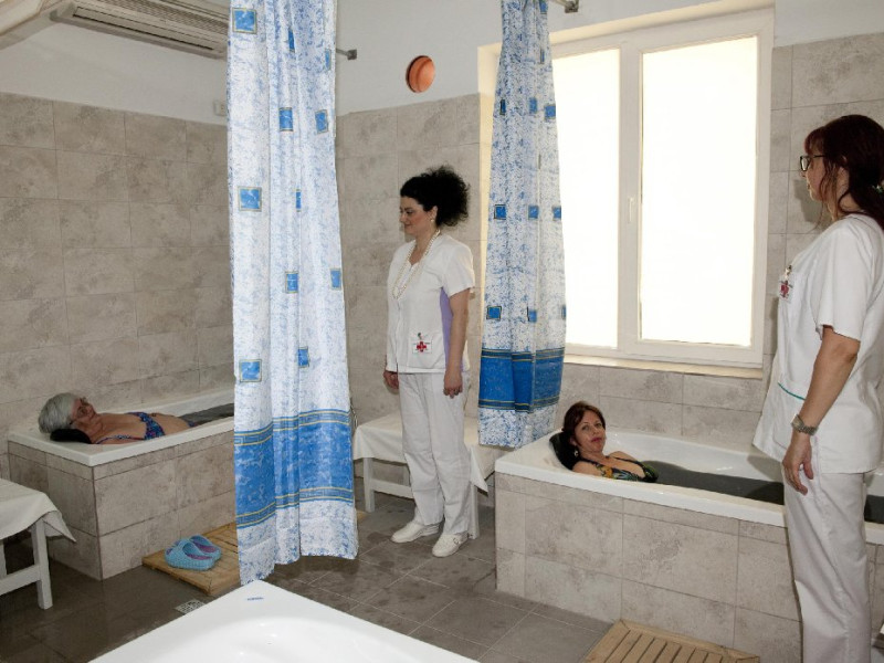 Bai de namol, hidrokinetoterapie de grup in bazin cu apa sarata provenita din lacul Techirghiol, cataplasme cu namol, cataplasme cu parafina, aerosoli cu apa sarata de mare, bai galvanice.