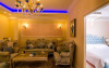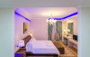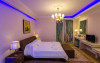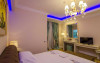 Deluxe Suite - cuprinde un spatiu deschis cu o suprafata de 60 mp, zona pentru dormit cu un pat matrimonial, o camera separata pentru copil (dotata cu un pat - dimensiuni 90cm/165cm ), vedere laterala catre mare.