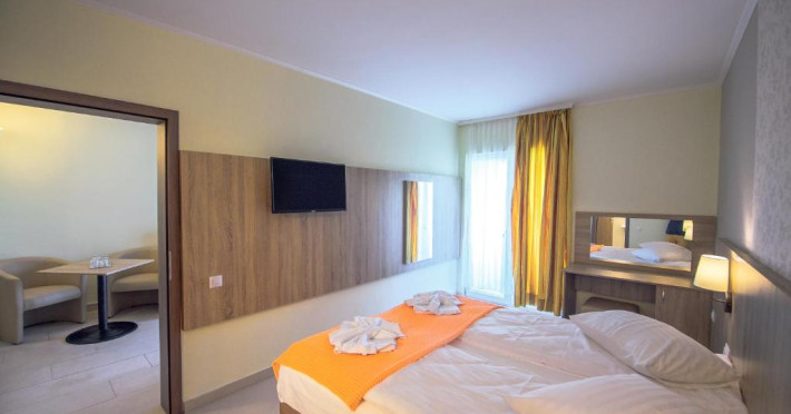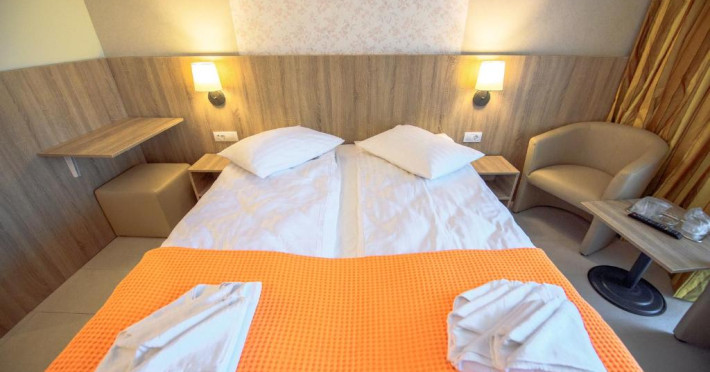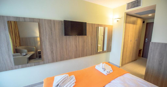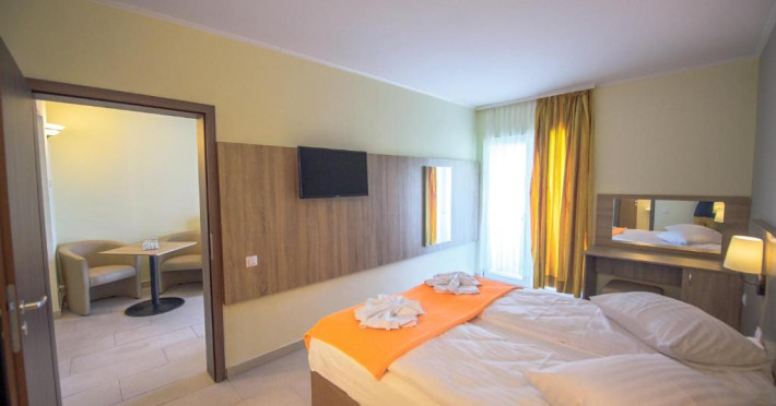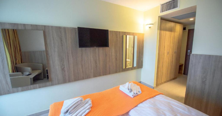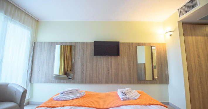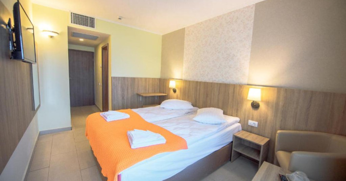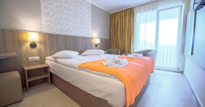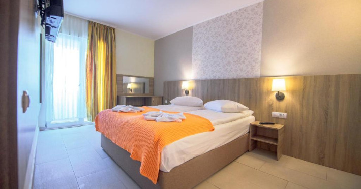 Facilități cameră dublă: pat matrimonial sau twin, baie proprie cu cadă sau duș, aer condiționat, televizor, seif, balcon.