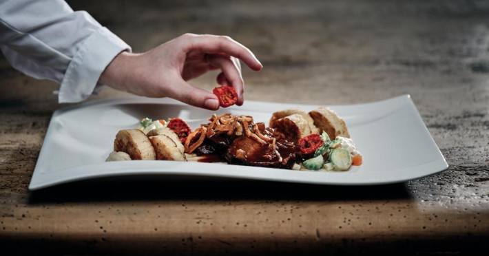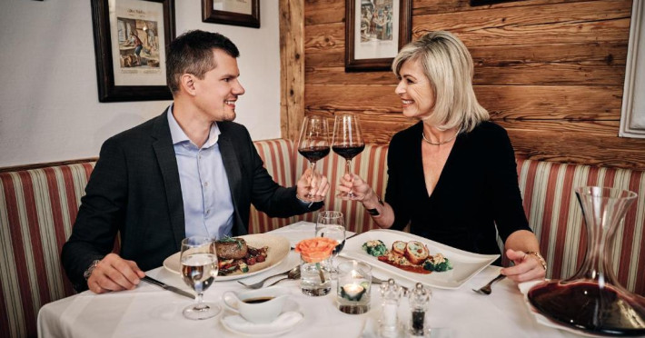 Se oferă un mic dejun tip bufet, iar regimul de demipensiune include și o cină cu 6 feluri cu preparate austriece și internaționale. Multe dintre produse provin de la ferma ecologică a hotelului. Se oferă o varietate mare de vinuri rafinate.