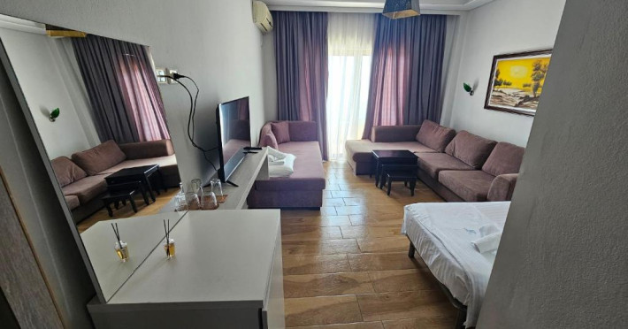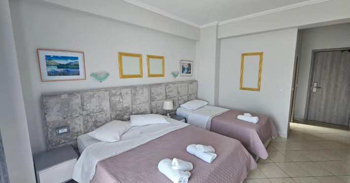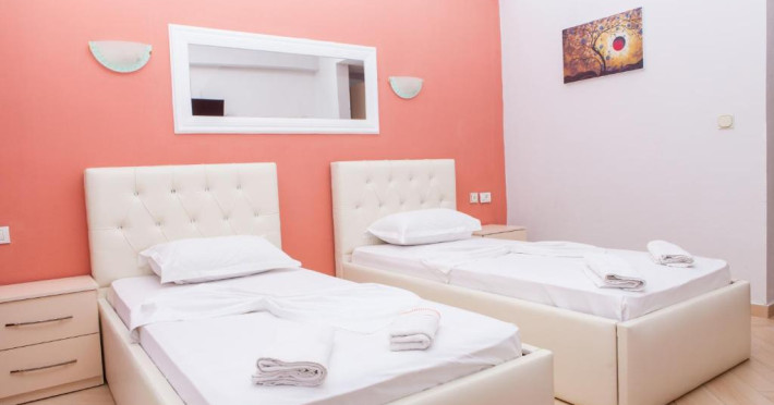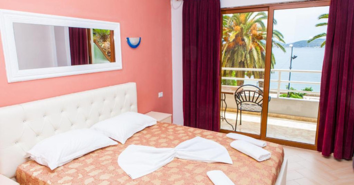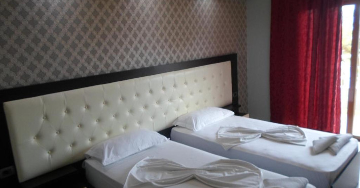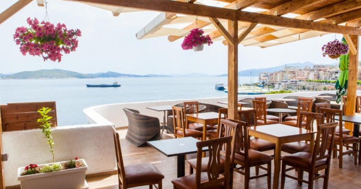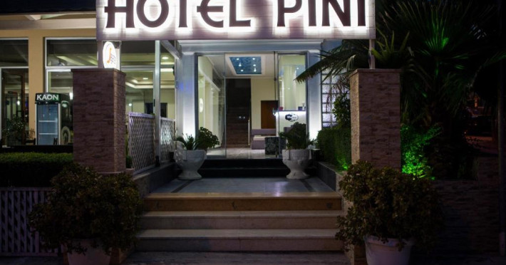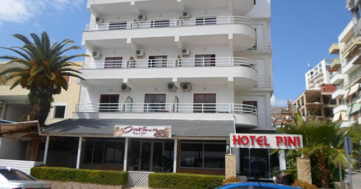 Hotelul Pini, unde este permis accesul cu animale de companie, situat in centrul localității Sarandë pune la dispoziție un bar și un restaurant cu terasă mobilată care are vedere la faleză și la mare. Se oferă acces gratuit la conexiunea WiFi in zonele publice.