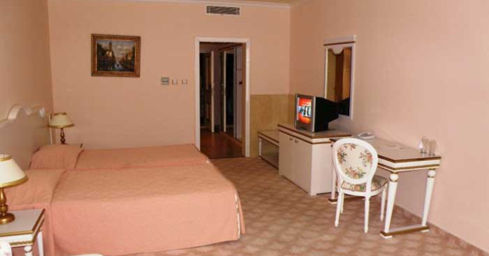 Hotelul dispune de aer condiționat centralizat, televizor, telefon, baie cu cadă, uscător de păr și balcon.