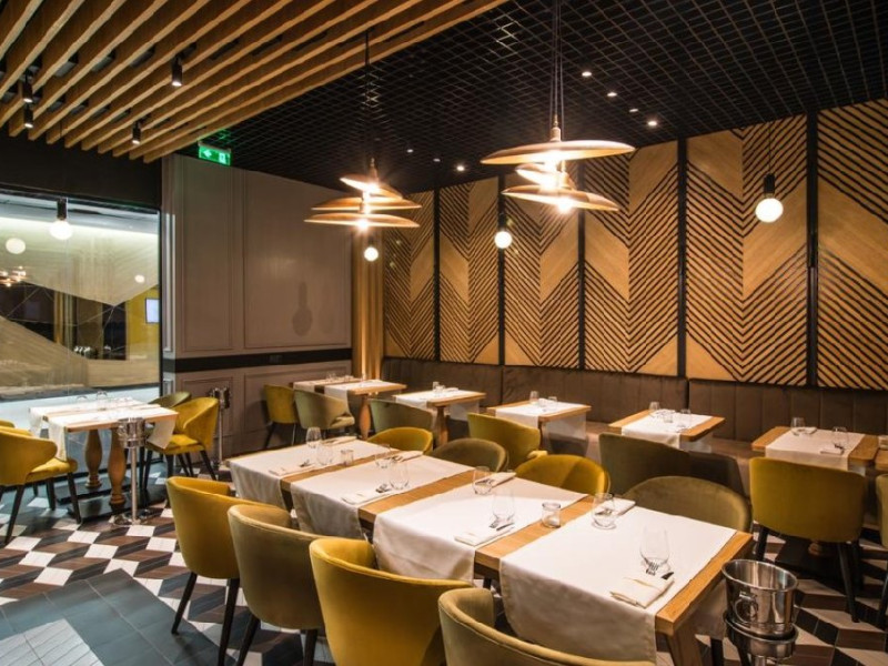 Oaspetii pot savura dimineata un mic dejun tip bufet si pot lua masa la restaurantul a la carte. Exista si un colt unde se serveste cafea din partea casei. Centrul comercial de la proprietate gazduieste o varietate de magazine si restaurante.