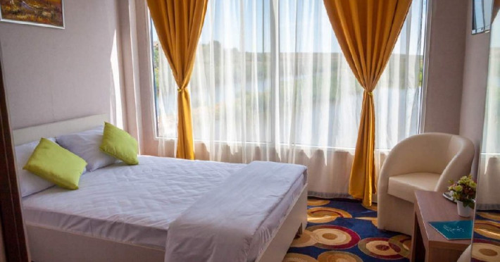 Localizare: Hotelul plutitor Bella Marina**** este locul ideal pentru o vacanta mai mult decat relaxanta si este situat intr-un cadru natural de exceptie, in Baltenii de Sus, sat amplasat pe malul drept al bratului Sf. Gheorghe, la o distanta de 3 km de comuna Bestepe si 23 km de municipiul Tulcea.Descriere: Hotelul plutitor Bella Marina**** dispune de 49 camere duble si 4 apartamente (standard si VIP). Toate camerele se bucura de un design modern si sunt dotate cu TV LCD, minibar, seif, cablu TV, internet, telefon, uscator de par, sistem de climatizare, sistem in caz de incendiu si detectoare de fum, sistem de acces cu card. Baia este dotata cu cada/cabina de dus, uscator de par, articole cosmetice, prosoape, halate de baie, papuci. Apartamentele dispun de 2 camere. Hotelul dispune doar de camere de nefumatori, iar fumatul (inclusiv tigara electronica) sunt interzise.