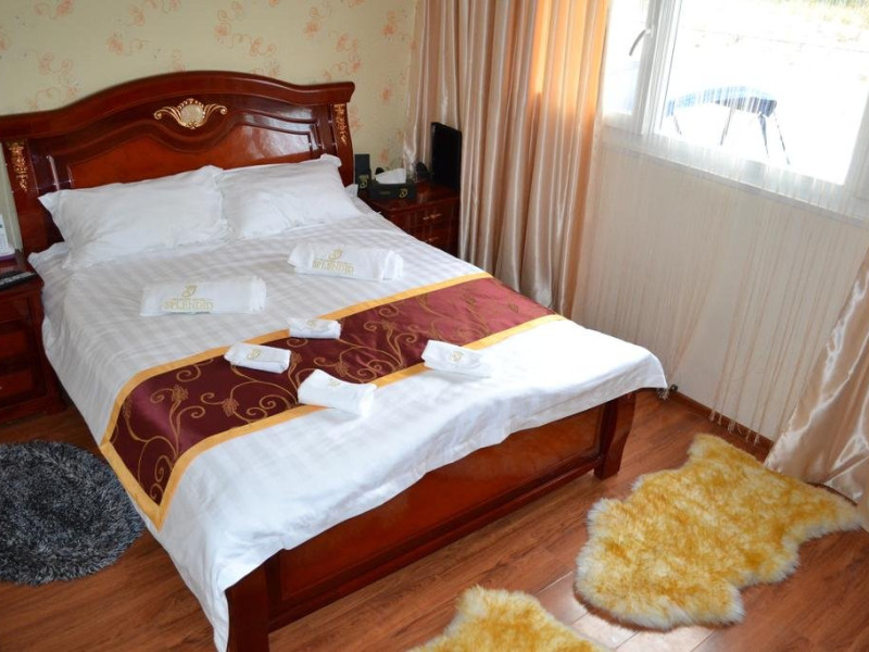 3 camere duble cu pat matrimonal, dintre care 2 sunt cu iesire pe terasa;