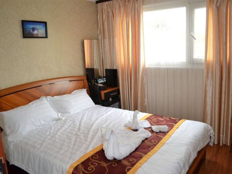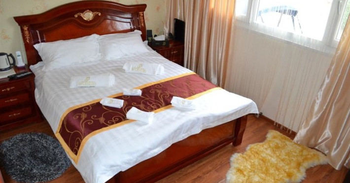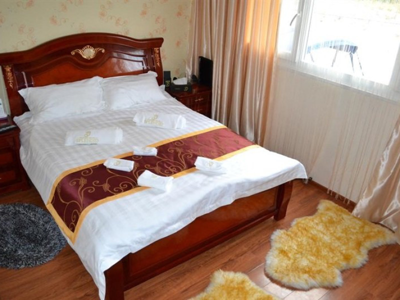 - 12 camere duble cu pat matrimonial, pentru cazare, ideale pentru familiile cu copii, bine izolate fonic si termic pentru a oferii intimitate si confort turistilor, mobilate cu un design unic deosebit, dotate cu instalatie de aer conditionat si incalzire, seif, televizor LCD-LED, minibar cu frigider, plase impotriva tantarilor, baie proprie in care gasiti cabina de dus cu hidromasaj si sauna, lavoar, wc;