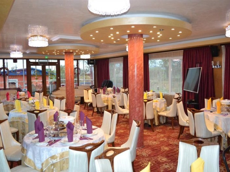 - restaurantul elegant de 120 m dotat cu televiziune prin satelit, sistem de sonorizare, calculator cu acces la internet, sala fiind pretabila organizarii de evenimente, sesiuni de team-building, conferinte. Restaurantul are ferestre generoase, pentru a admira privelistea de vis chiar si in timpul mesei;