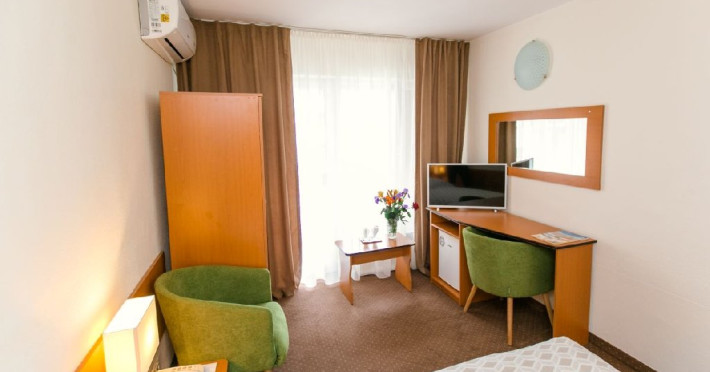 Camerele duble dispun de pat matrimonial sau twin, aer conditionat, balcon, TV, fotolii si masuta de cafea, birou de lucru cu internet Wi-Fi, mocheta, telefon. Baia este dotata cu cada