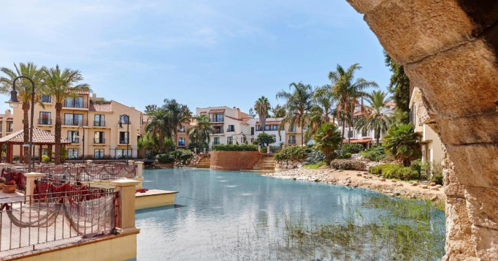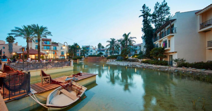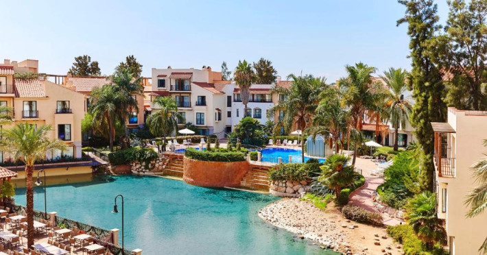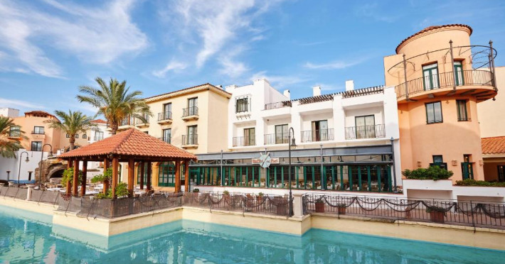 Hotelul este o replică a unui sat tipic mediteranean, cu grădini și un lac. Are acces direct la zona mediteraneană din PortAventura Park.