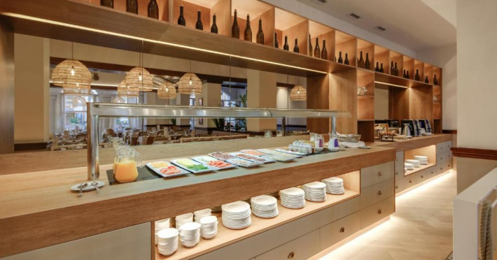 Restaurantul Port Regata servește opțiuni à la carte pentru micul dejun. Restaurantele Buffet del Mar, Buffet del Port și La Cascada oferă mic dejun mediteranean și bufet și preparate din bucătăria. Cal Pep servește băuturi și gustări langă piscină.