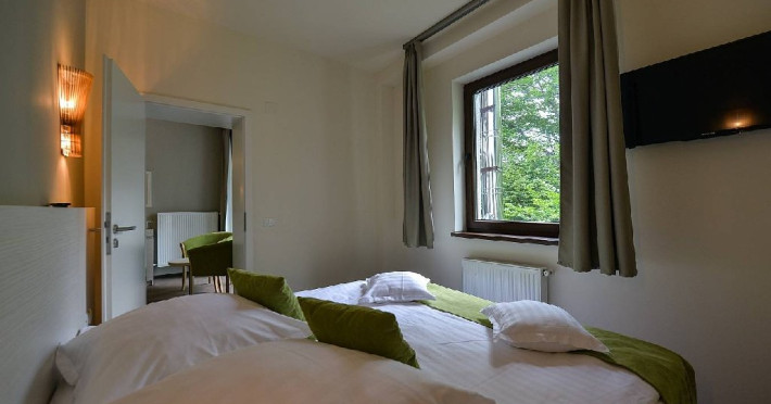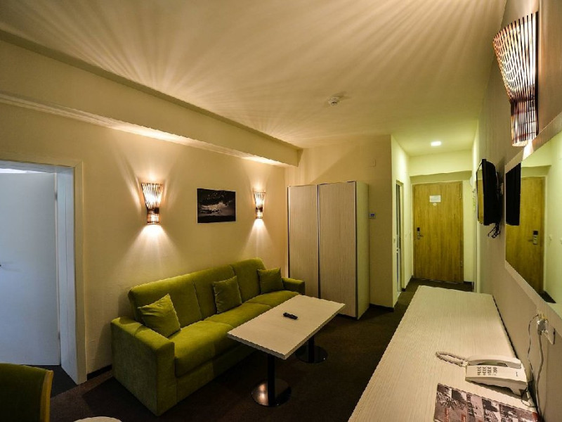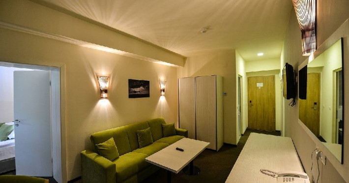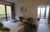 Apartamentele dispun de un dormitor cu pat matrimonial si living cu canapea extensibila.