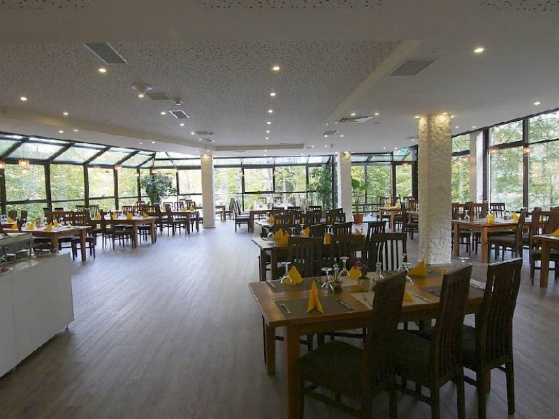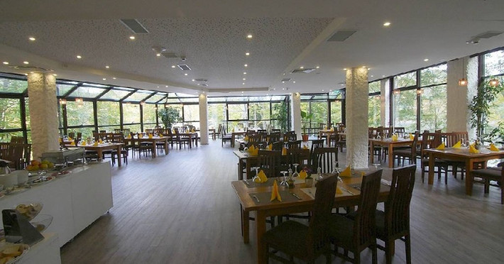 Hotelul dispune de restaurant (capacitate 120 locuri) si terasa (capacitate 40 locuri).