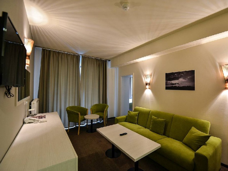 Hotelul pune la dispozitia clientilor o sala de conferinte modulara cu o capacitate totala de 150 de locuri, echipata cu: videoproiector, ecran de proiectie, internet wireless, flipchart, aer conditionat, sistem audio.