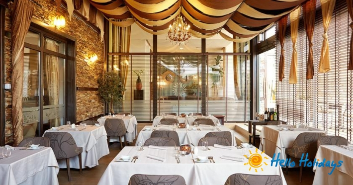 Restaurantul principal Dionyssos serveşte un mic dejun internaţional tip bufet, precum şi cina. Oaspeţii pot lua masa şi la Amvrosia Butcher Modern Cuisine.