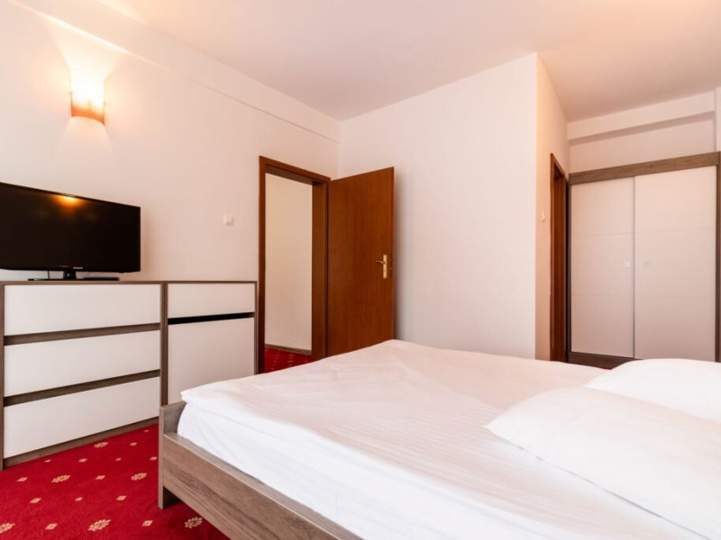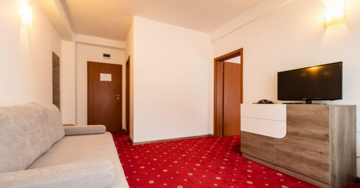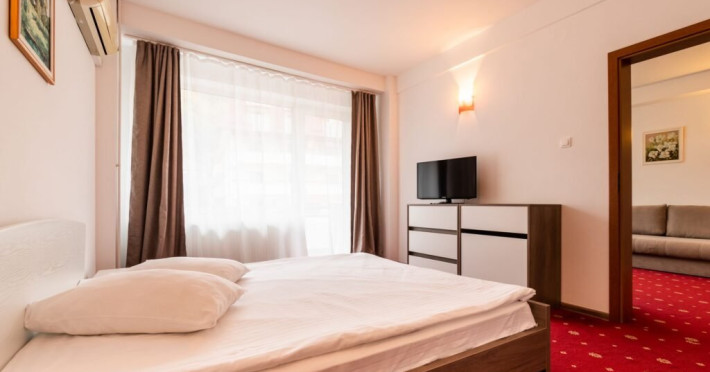 Apartamentul deluxe este compus dintr-un dormitor cu pat matrimonial si un living cu o canapea extensibila 160*200 cm, baie cu cada si dressing.