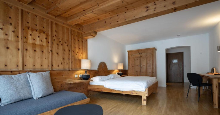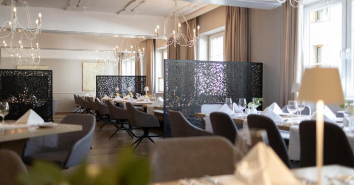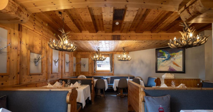Pe perioada iernii, restaurantul serveste preparate din bucătăria tiroleză traditională. Regimul de demipensiune include o cină cu 3 feluri si un bufet de salate. Dimineata este disponibil un bufet variat de mic dejun. Hotelul Maria Theresia are un lounge elegant, cu semineu si bar.