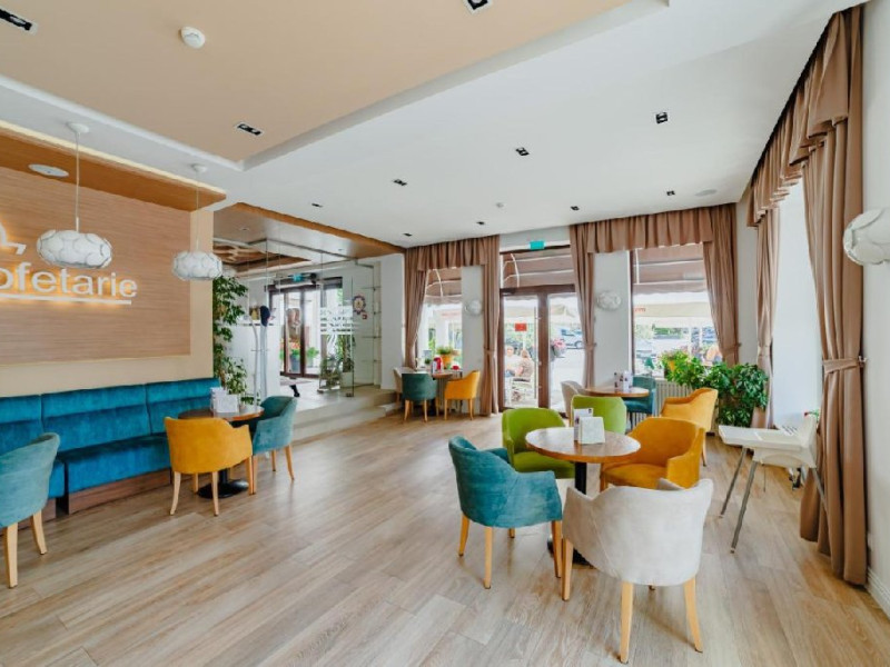Cofetaria din incinta hotelului oferta un sortiment larg de delicii.