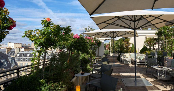 During the summer season, guests can quench your thirst or sit down for a summertime meal on the splendid rooftop located on the 7th floor. Like is a true hanging garden, the rooftop offers a panoramic 360° view over Paris where guests can take in the Eiffel Tower, the Arc de Triomphe, the Sacré Cœur.
