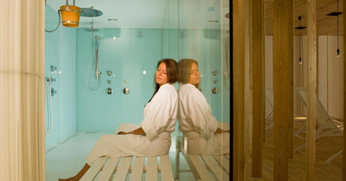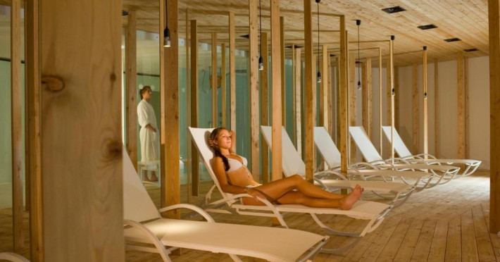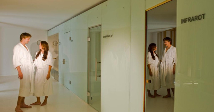 Centrul de 1000 m² SPAradies pune la dispozitie diferite saune, camere pentru fizioterapie, masaj si fitness, precum si o sală mare de relaxare cu vedere la grădină.