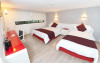 Camerele cu aer conditionat de la Hotelul Regente includ TV prin cablu si seif. Toate camerele au podea din lemn si sunt decorate in nuanțe indrăznețe de negru, alb si rosu.