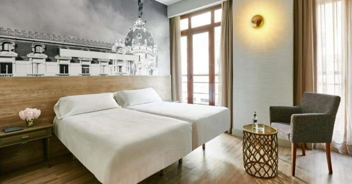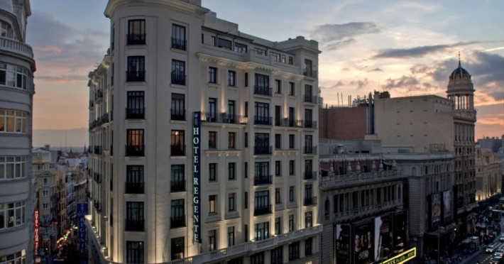 Hotelul Regente este situat pe bulevardul Gran Via din Madrid si la 400 de metri de Piata Puerta del Sol. Acesta oferă camere elegante si simple cu TV prin satelit si acces la Wi-Fi.