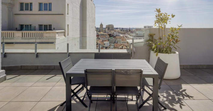 Statia de metrou Callao, situată la doar 100 de metri distantă, oferă conexiuni usoare de transport public cu restul orasului.