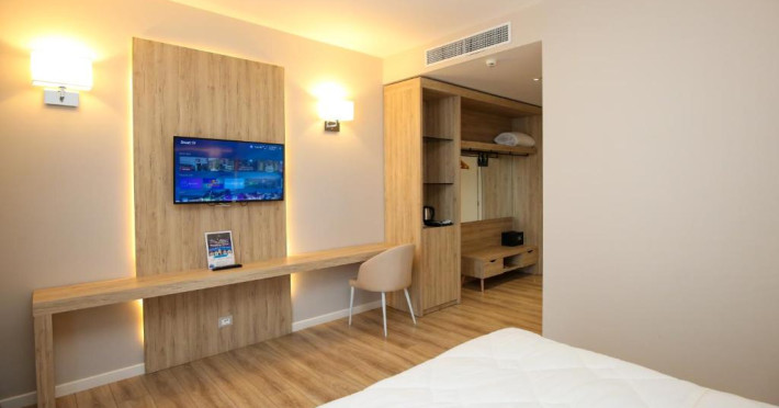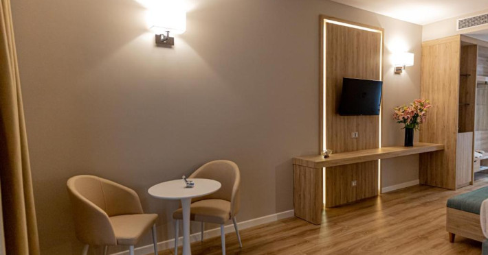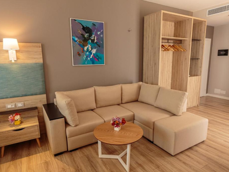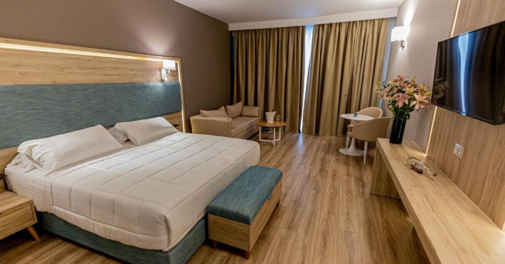 Camerele sunt dotate cu aer condiționat, TV, minibar și balcon, majoritatea oferind priveliști spre mare. Oaspeții se pot bucura de piscina in aer liber sau pot alege să se relaxeze pe plaja privată a hotelului, unde sunt disponibile șezlonguri și umbrele.