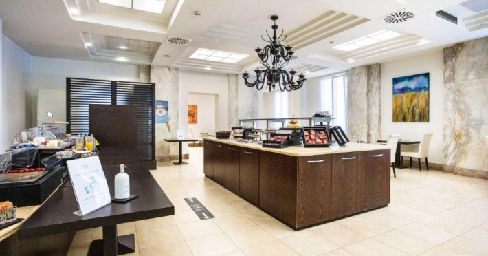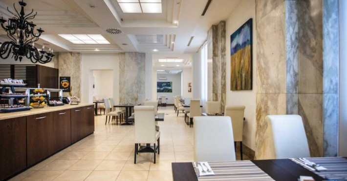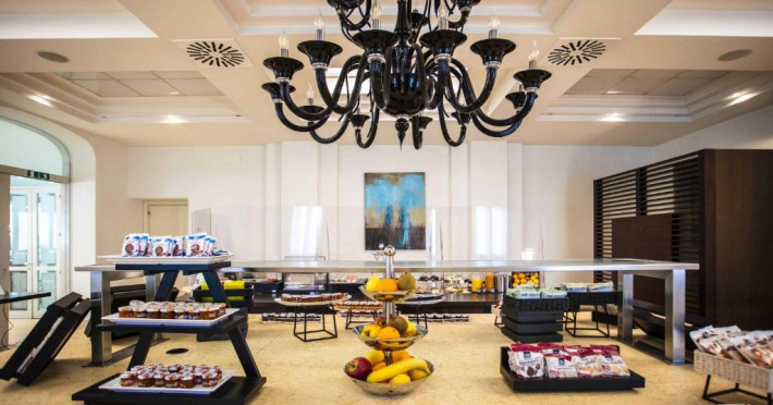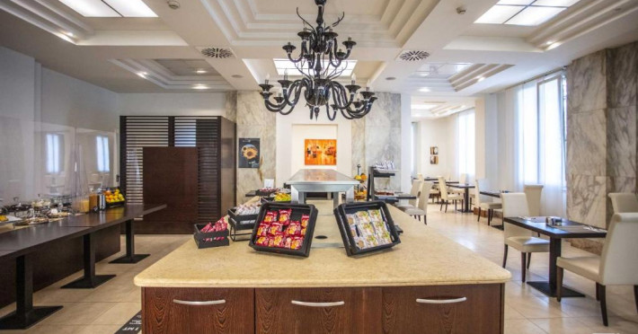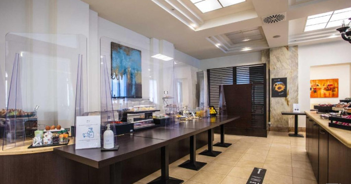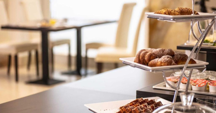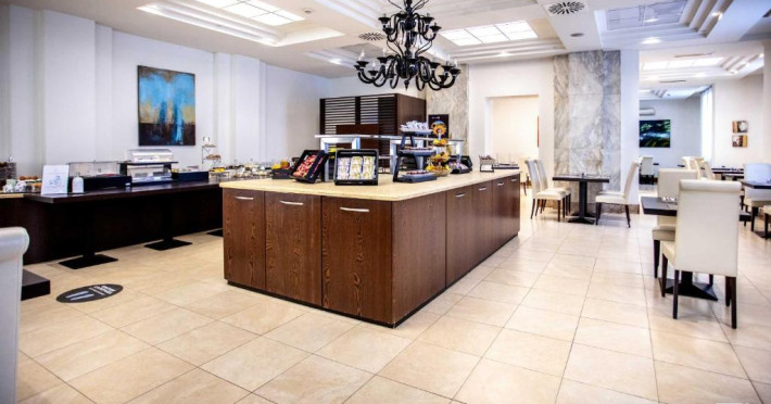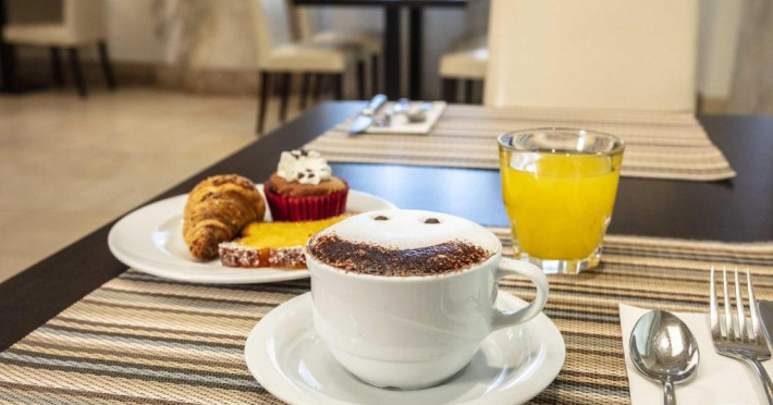 Restaurantul modern al hotelului oferă o gamă largă de mancăruri tradiționale tip bufet, care includ paste de casă și dulciuri produse la proprietate.