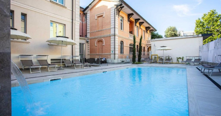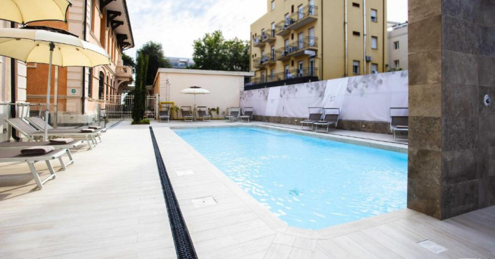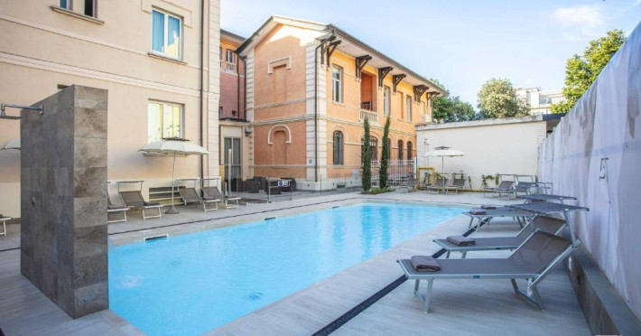 Hotelul Regina Elena 57 & Oro Bianco se află chiar pe promenada de la malul mării, Marina Centro. Oferă camere stilate cu WiFi gratuit intr-o vilă elegantă. Centrul istoric din Rimini se află la cateva minute de mers pe jos.