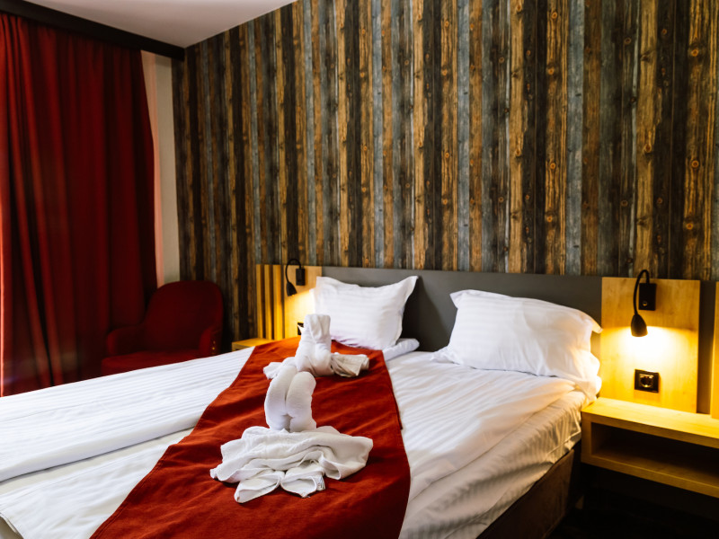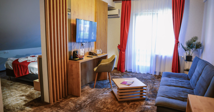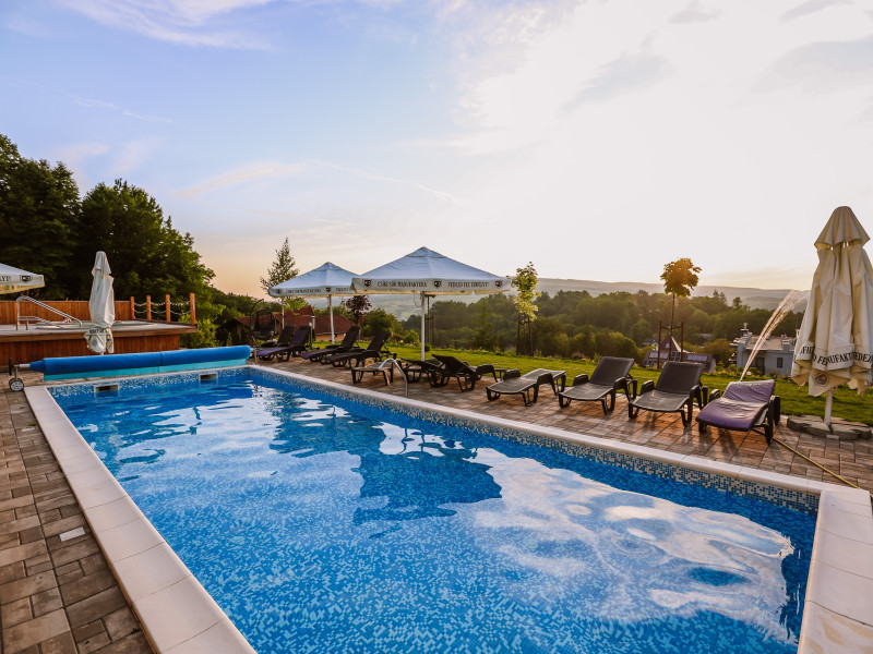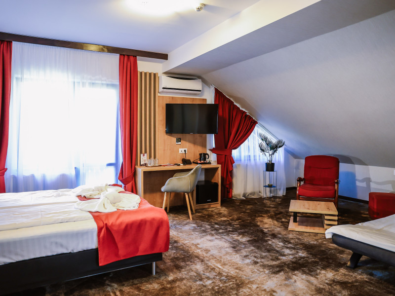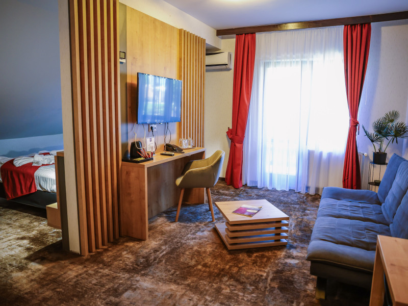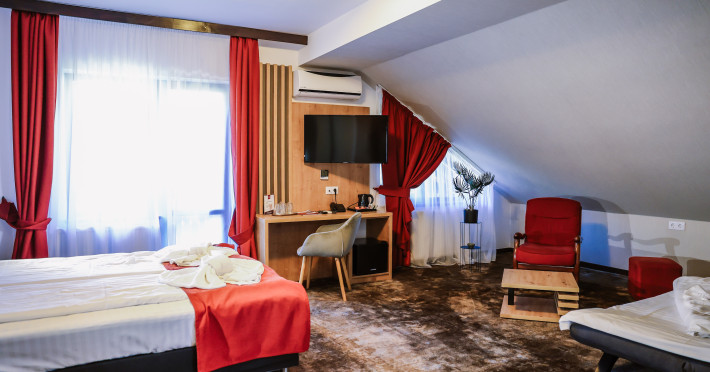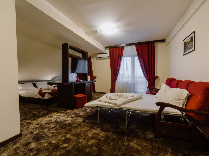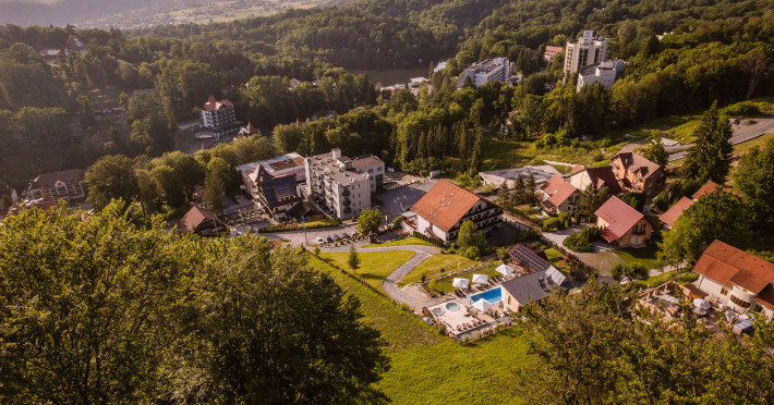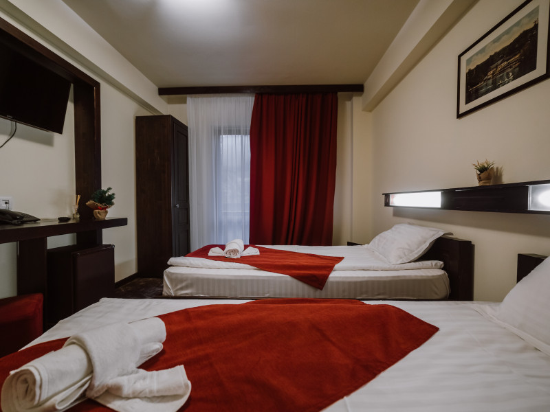 Relax Hotel Resort Sovata â Liniste si relaxare in inima naturii Localizare Relax Hotel Resort este situat in statiunea balneoclimaterica Sovata, la doar cateva minute de Lacul Ursu, faimos pentru proprietatile sale terapeutice. Complexul este inconjurat de natura, oferind un cadru ideal pentru odihna si relaxare. Cazare Hotelul dispune de 22 camere simple, confortabile si luminoase, fiecare dotata cu: ⢠Terasa privata â locul perfect pentru a savura aerul curat si peisajul ⢠Baie proprie ⢠TV ⢠Wi-Fi gratuit Este o alegere excelenta pentru cei care doresc liniste si apropiere de natura, intr-o atmosfera relaxanta si prietenoasa.⸻ Facilitati si servicii ⢠Piscina interioara pentru copii. ⢠Piscina exterioara cu sezlonguri, jacuzii si piscina pentru copii, ciubar cu apa sarata (functioneaza doar vara) ⢠Centru Wellness: jacuzzi, sauna, baie de aburi si masaje ⢠Restaurant si bar cu preparate locale si internationale ⢠Sala pentru evenimente si conferinte ⢠Parcare privata gratuita ⸻ Avantaje cheie: Toate camerele au terasa privata Doua piscine â interioara pentru copii si exterioara pentru adulti Zona linistita, inconjurata de natura Aproape de Lacul Ursu si traseele de drumetii Servicii de wellness pentru relaxare completa ⸻ Relax Hotel Resort Sovata este destinatia ideala pentru cei care cauta odihna, aer curat si facilitati de relaxare intr-un cadru natural deosebit.Datorita dinamicitatii domeniului disponibilitatea ofertelor se modifica de la un moment la altul. De aceea ofertele sunt valabile in limita locurilor disponibile. Agentia nu este responsabila pentru eventualele neconcordante care pot aparea intre informatiile privind tarifele si alte detalii din site si informatiile primite in agentie. In aceste cazuri vor avea prioritate, intotdeauna, informatiile primite in agentie.