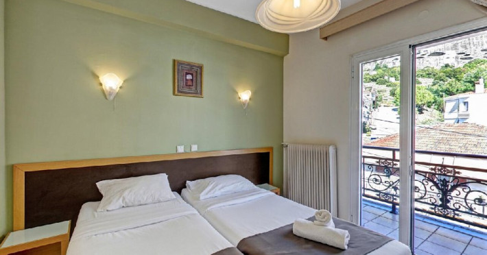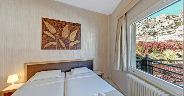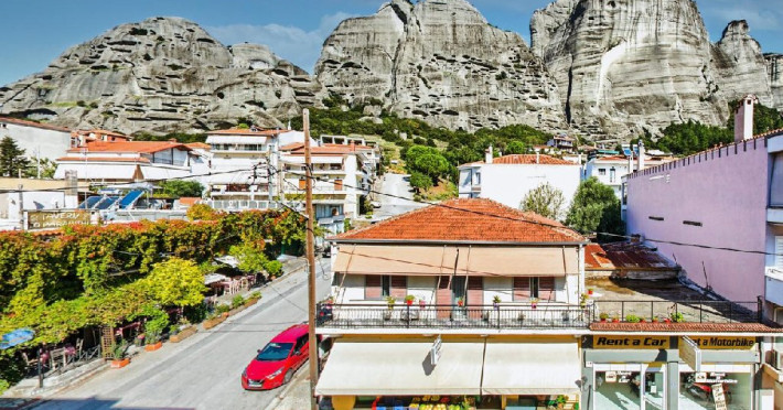 Unele camere au vedere spre Meteora, altele spre artera principala a orasului.
