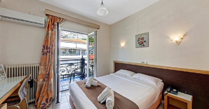 Locatie: Hotel Rex este unul dintre cele mai renumite hoteluri de 3 stele din Kalambaka. Acesta dispune de toate facilitatile si este situati in centrul orasului Kalampaka pe strada principala a orasului, parte din drumul catre manastirile de la Meteora.Constructia asigura camere insorite si bine aerisite pe tot parcursul anului