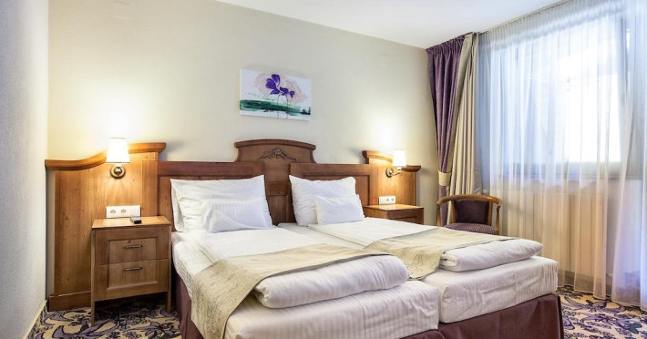 Camere : dispune de 88 de camere, din care 45 camere duble superioare cu balcon, 30 camere duble standard fara balcon, 8 Apartamente superioare cu balcon si 5 apartamente standard fara balcon. Dintre acestea, exista o camera special amenajata pentru persoanele cu dizabilitati. Toate camerele sunt prevazute cu sistem de acces pe baza de cartele magnetice, WiFi gratuit, TV cu ecran plat, televiziune prin cablu, minibar, seif, grup sanitar cu dus.