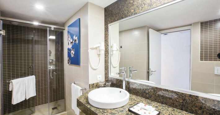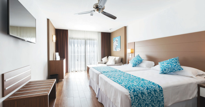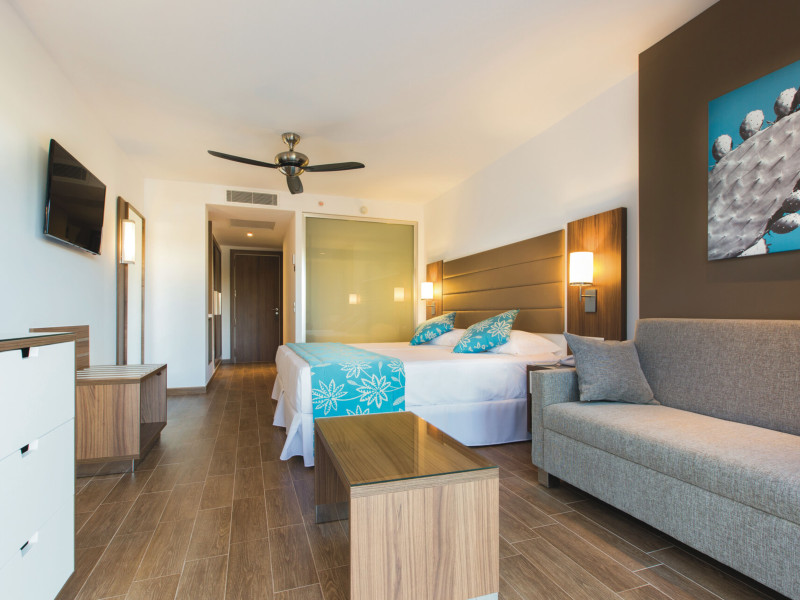 The hotel HOTEL RIU BRAVO is located approximately 300 m from a beach. A supermarket is around 200 m away. On the beach are cushions and sun umbrellas for a fee available. The hotel has a 24h reception, a lobby as well as 2 lifts. In the outdoor area you will find a pool that is open seasonally, where you can rent pool towels for a fee. Inside the hotel you can use an indoor pool. For very young guests, highchairs can be provided. There is also a laundry service available at an additional cost to customers. If necessary, you can contact the medical centre (for a fee). If you want to explore the holiday region, you can use the car rental service close to the hotel (extra fee). Due to its barrier-free facilities , such as barrier-free entrances and wheelchair accessible rooms, the hotel is also suitable for wheelchair users. Catering Breakfast is offered from the buffet. Lunch and dinner are also served from the buffet. For the meals, there are a restaurant with terrace and several bars as well as the pool bar. For dinner, guests are asked to wear appropriate clothing in the restaurant. Distances- Airport: approximately at 5 km