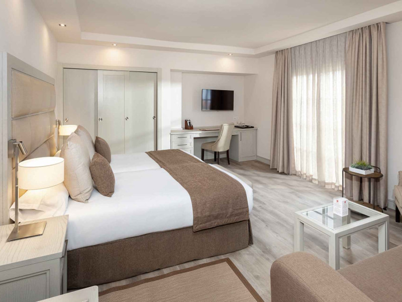 Around 1,5 km from a public sandy/stone beach lies the 4 star hotel Hotel Riu Garoe. The nearest bars and restaurants can be found at a distance of around 500 m. The old town is around 1,5 km away. The nearest shops you can reach within around 500 m, a supermarket is around 100 m away. There is a 24h shuttle service between the hotel and the airport (for a fee) 24h a day. Near the beach there is a promenade where you can go for a stroll. To reach the beach a shuttle is provided. The seasonally air-conditioned, GPS-verified hotel is equipped with a 24h reception (check-in is possible around the clock), a lobby bar, Wi-Fi, internet access, 4 lifts, a hairdresser, a jacuzzi, showers and changing rooms, a first aid kit, parking spaces (limited) as well as a TV lounge with satellite TV. In the outdoor area of the property you will find a garden as well as a seasonally heated and supervised pool (open all year), where sun loungers, sun umbrellas and pool towels are available for free. There is also a separate children's pool with a non-swimming area. Furthermore, you can relax outdoors on the sun terrace. You can store your valuables in the safe (extra fee), and your luggage in the hotel`s storage room. In addition, the hotel Hotel Riu Garoe is video-monitored 24h a day. For your entertainment, the hotel offers a library/reading room. For the young hotel guests there is a playground. For very young guests, kid`s chairs, highchairs and cots can also be provided. For the smallest children prams can be rented in the hotel. There is also a laundry service available at an additional cost to customers as well as an ironing service. Ironing equipment can also be rented at the hotel for a fee. For your comfort there is a concierge service. If necessary, you can contact the medical centre at any time (for a fee). Guests at the accommodation can get a wake-up call from the hotel personnel. The energy supply is 230 Volts. For conventions and other business meetings, the hotel offers a conference area with a reception, lectern, tables, a video projector, printer, overhead projector as well as internet access. A photographer can also be ordered from the hotel for business events. If you want to explore the holiday region, you can use the car and motorbike rental service close to the hotel. In addition, the hotel sells tickets for excursions. For guests on their honeymoon, the hotel has special offers such as a romantically-decorated room, rooms with a particularly romantic location and view, special honeymoon packages, champagne, sparkling wine, a basket of fruit or flowers in the room. In your hotel, a lot of focus is placed on sustainability. This includes the hotel`s own recycling bins, the provision of soap and shampoo dispensers, organic food, a central room air-conditioning and environmentally-friendly cleaning. That is why the hotel Hotel Riu Garoe was also awarded a sustainability certificate. For water and a club card may incur extra charges at the hotel. The hotel requires that all guests pay a deposit upon arrival. American Express, Euro/Master Card, Visa and EC cards are accepted as means of payment. Due to its barrier-free facilities , such as a hotel door that can be opened manually, barrier-free entrances, wheelchair accessible rooms, a wheelchair accessible lift, a handrail in the elevator and wheelchair-accessible bathrooms, the hotel is also suitable for wheelchair users. Catering As catering services the hotel offers half board and breakfast only. Breakfast is offered from the buffet or as brunch (extras on request). Enjoy your lunch à la carte with starters, salads and desserts (extras on request). Dinner is also served as a buffet with starters, salads and desserts (extras on request). Half board includes breakfast and dinner. When booking half board plus, selected imported spirits (limited) are included. For the meals, there are a buffet restaurant with terrace (Mediterranean, calorie-reduced and gluten-free dishes) and 2 bars, the cafeteria as well as the pool bar. The drinks menu of the hotel includes water, soft drinks, coffee and tea, beer and wine. For dinner, guests are asked to wear appropriate clothing in the restaurant. Distances- Discotheque: approximately at 500 m