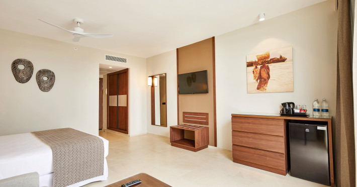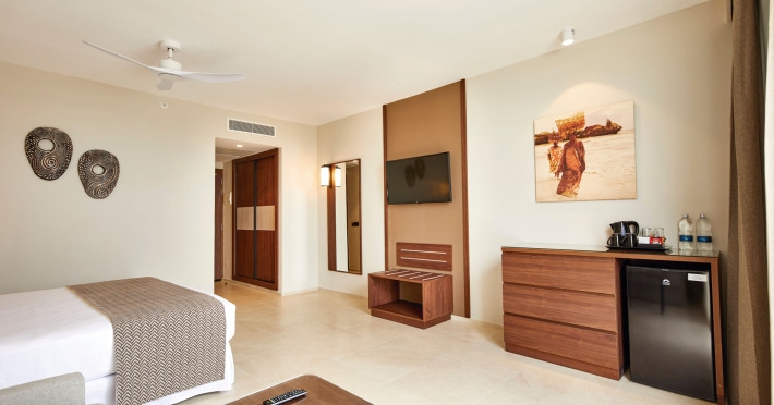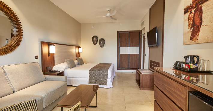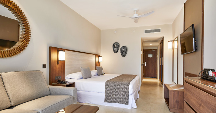 In the vicinity of the sandy beach is located the hotel RIU JAMBO. On the beach are sun loungers, sun umbrellas and beach towels available. The hotel is equipped with a 24h reception (check-in is possible around the clock), a lobby bar, Wi-Fi, internet access, a lift, a shop, cash machine, a first aid kit, parking spaces as well as a TV lounge with satellite TV. In the outdoor area you will find a garden as well as a pool (open all year), where pool towels are available for free. There is also a children's pool. Furthermore, outside you can find a terrace. You can store your valuables in the safe, and your luggage in the hotel`s storage room. For the young hotel guests there is a playground. For very young guests, cots can also be provided. There is also a laundry service. Ironing equipment can be borrowed at the hotel. If necessary, you can contact the medical centre. In your hotel, a lot of focus is placed on sustainability. This includes among others a central room air-conditioning. American Express, Euro/Master Card and Visa are accepted as means of payment. Catering As catering services the hotel offers all-inclusive. Breakfast is offered continental or from the buffet. Enjoy your lunch from the buffet. Dinner is also served as a buffet or à la carte. As part of the all-inclusive service, local and international alcoholic beverages (24h, unlimited) are available around the clock and at no extra charge. For the meals, there are a restaurant with terrace (Italian, gluten-free and vegetarian dishes) and several bars, a 24h snackbar as well as the pool bar. The drinks menu of the hotel includes 24h international alcoholic beverages. Appropriate clothing is required for lunch and dinner. Sports & Leisure To keep your fitness up on holiday, there is a gym for guests to use. Furthermore, various water sports such as snorkelling are offered in the area. For snorkelers equipment is provided at a diving rental shop. The wellness area offers massages and beauty treatments. Infants can be looked after in the hotel`s own baby club. For older children the care takes place in the children`s club. Junior hotel guests can also let off steam in the mini disco. In terms of adult entertainment, evening shows and live music are presented. Additional information The 7-storey hotel has a total of 461 rooms. The hotel staff speak English.In the vicinity of the sandy beach is located the hotel RIU JAMBO. On the beach are sun loungers, sun umbrellas and beach towels available. The hotel is equipped with a 24h reception (check-in is possible around the clock), a lobby bar, Wi-Fi, internet access, a lift, a shop, cash machine, a first aid kit, parking spaces as well as a TV lounge with satellite TV. In the outdoor area you will find a garden as well as a pool (open all year), where pool towels are available for free. There is also a children's pool. Furthermore, outside you can find a terrace. You can store your valuables in the safe, and your luggage in the hotel`s storage room. For the young hotel guests there is a playground. For very young guests, cots can also be provided. There is also a laundry service. Ironing equipment can be borrowed at the hotel. If necessary, you can contact the medical centre. In your hotel, a lot of focus is placed on sustainability. This includes among others a central room air-conditioning. American Express, Euro/Master Card and Visa are accepted as means of payment. Catering As catering services the hotel offers all-inclusive. Breakfast is offered continental or from the buffet. Enjoy your lunch from the buffet. Dinner is also served as a buffet or à la carte. As part of the all-inclusive service, local and international alcoholic beverages (24h, unlimited) are available around the clock and at no extra charge. For the meals, there are a restaurant with terrace (Italian, gluten-free and vegetarian dishes) and several bars, a 24h snackbar as well as the pool bar. The drinks menu of the hotel includes 24h international alcoholic beverages. Appropriate clothing is required for lunch and dinner. Sports & Leisure To keep your fitness up on holiday, there is a gym for guests to use. Furthermore, various water sports such as snorkelling are offered in the area. For snorkelers equipment is provided at a diving rental shop. The wellness area offers massages and beauty treatments. Infants can be looked after in the hotel`s own baby club. For older children the care takes place in the children`s club. Junior hotel guests can also let off steam in the mini disco. In terms of adult entertainment, evening shows and live music are presented. Additional information The 7-storey hotel has a total of 461 rooms. The hotel staff speak English.