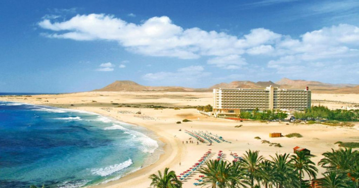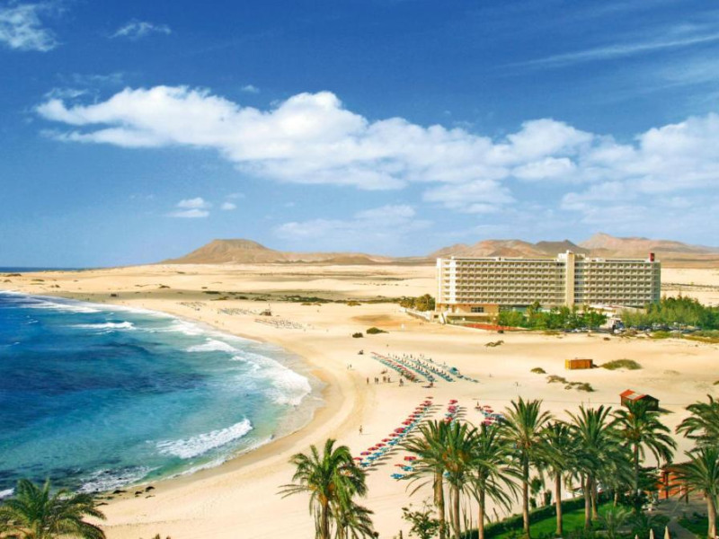 Hotel Riu Oliva Beach Resort - All Inclusive se află intr-o locație privilegiată, direct pe plaja Grandes Playas din Corralejo, una dintre cele mai spectaculoase plaje cu nisip auriu din Fuerteventura. Acest complex all inclusive oferă acces imediat la 3 km de plajă virgină, perfectă pentru inot și sporturi nautice.