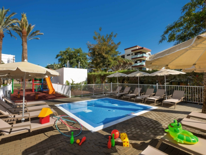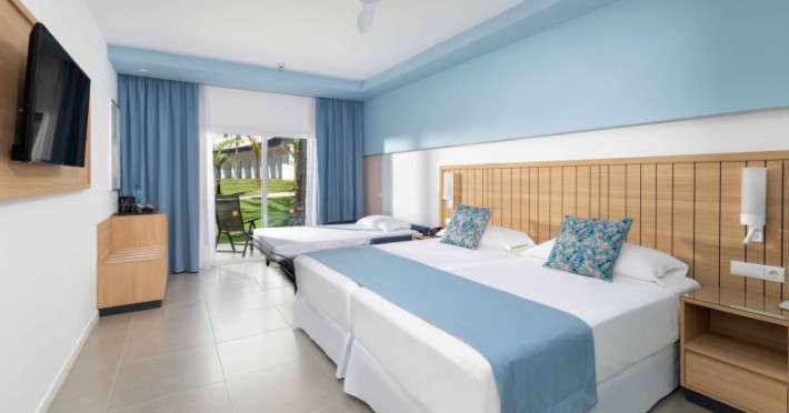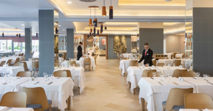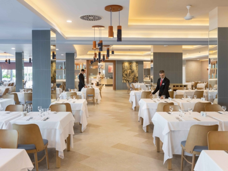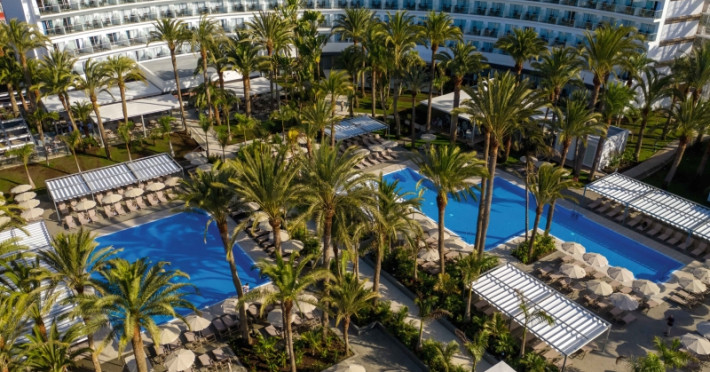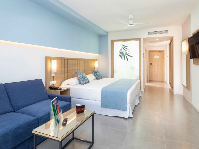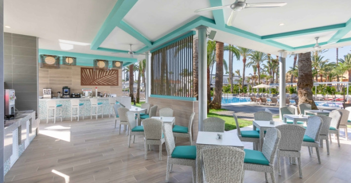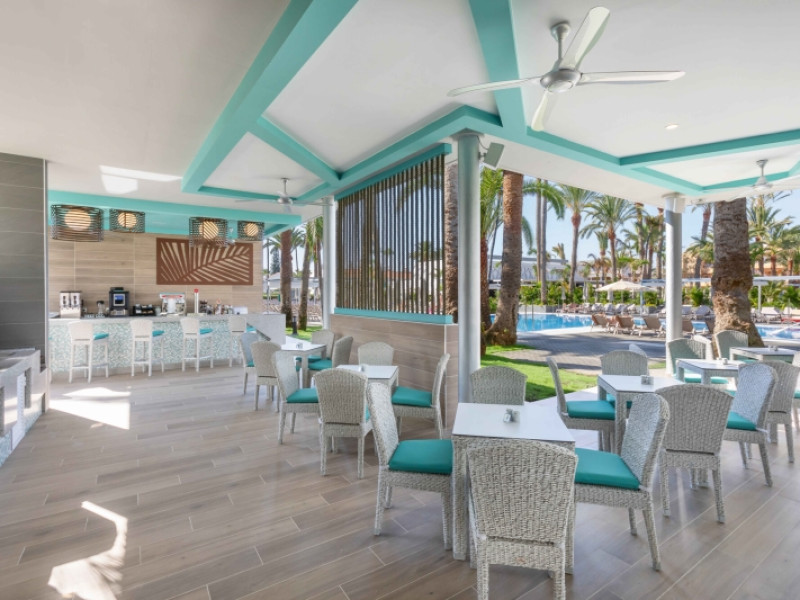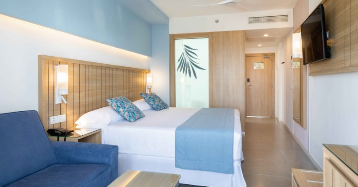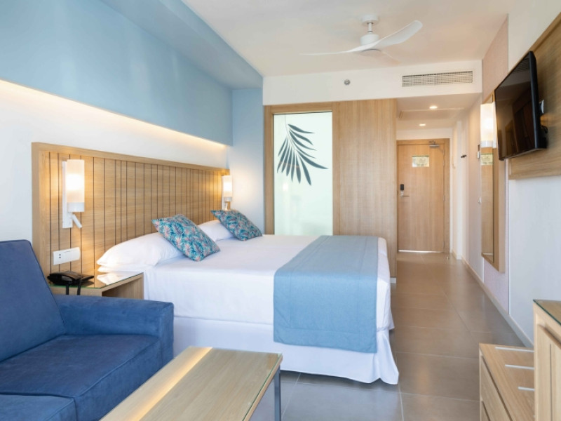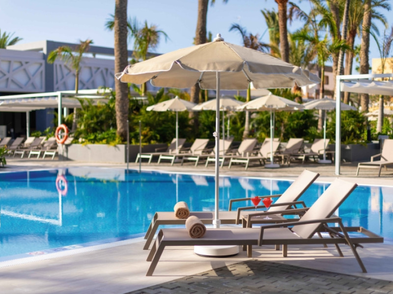 Around 350 m from a beach is located the hotel HOTEL RIU PALACE PALMERAS. On the beach are sun loungers for a fee available. The hotel has a 24h reception, a lobby bar, Wi-Fi, internet access (for a fee) as well as parking spaces (for a fee). In the outdoor area you will find a pool that is open seasonally, where sun umbrellas are available for free. There is also a children's pool. Furthermore, you can relax outdoors on the sun terrace. For the young hotel guests there is a playground. There is also a laundry service available at an additional cost to customers. For your comfort the hotel page will ensure you are looked after. If necessary, you can contact the medical centre (for a fee). If you want to explore the holiday region, you can use the car rental service close to the hotel (extra fee). Due to its barrier-free facilities , such as barrier-free entrances and wheelchair accessible rooms, the hotel is also suitable for wheelchair users. Catering As catering services the hotel offers all-inclusive. Breakfast is offered from the buffet. Enjoy your lunch from the buffet. Dinner is also served as a buffet or à la carte. For the meals, there are a restaurant with terrace and several bars as well as the pool bar. The drinks menu of the hotel includes water, soft drinks, coffee and tea, beer and wine. For dinner, guests are asked to wear appropriate clothing in the restaurant. Distances