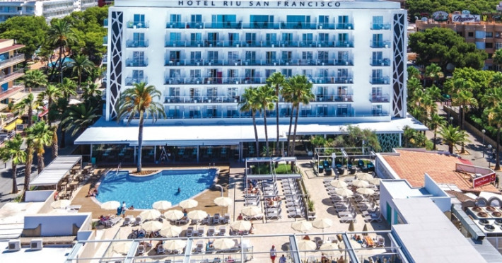 The hotel HOTEL RIU SAN FRANCISCO ONLY ADULTS is located next to a beach. The city centre is around 3 km away. A supermarket is around 100 m away. The hotel is equipped with a lift. At the pool, deck chairs, parasols and pool towels are available for free. There is also a laundry service. If you want to explore the holiday region, you can use the car rental service close to the hotel. Catering Breakfast is offered from the buffet. Dinner is also served as a buffet. Distances- Nearest town: approximately at 120 km