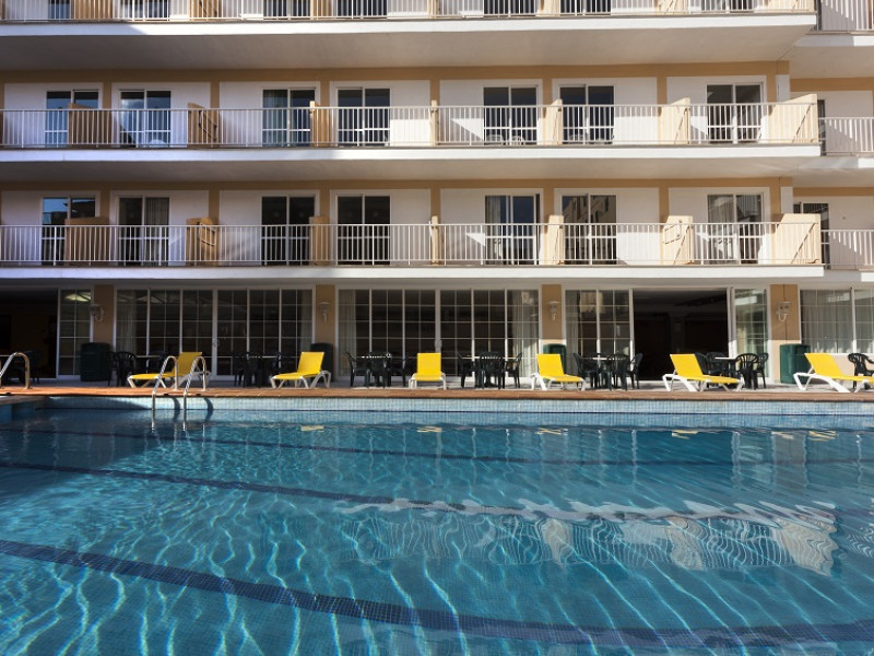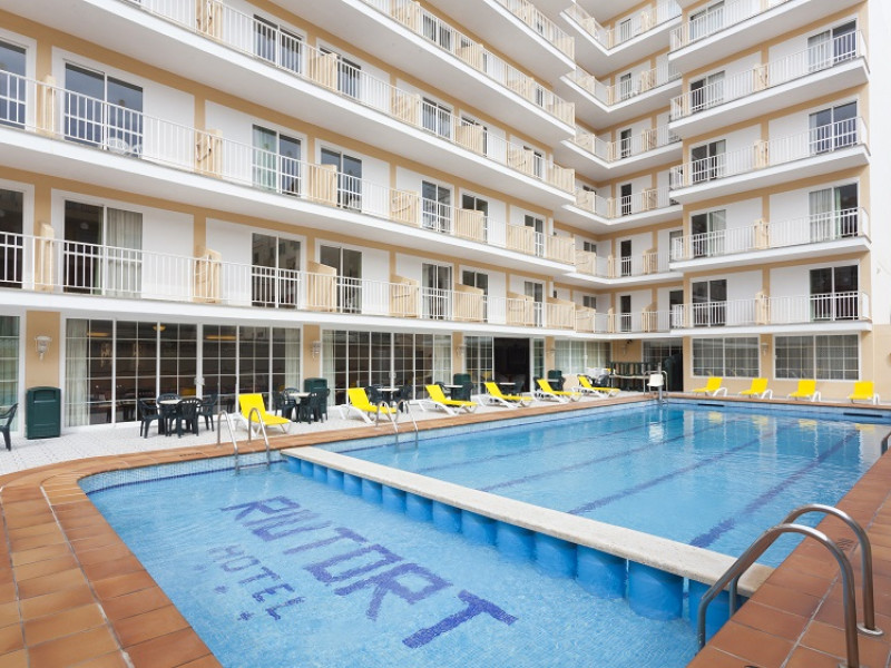 About 200 m from a sandy beach lies the hotel Hotel Riutort. The nearest restaurants and bars can be reached in a few minutes on foot. The old town is around 13 km away. You can find a range of shops and a supermarket directly on your doorstep. There is a shuttle between the hotel and the airport (for a fee). Nearby there is a disco which offers entertainment in high season. The beach is patrolled by a lifeguard and awarded a blue flag. Directly next to the beach there is a promenade where you can take leisurely walks. The air-conditioned hotel has a 24h reception (check-in is possible around the clock), a lobby bar, Wi-Fi, 2 lifts, a jacuzzi, showers and changing rooms, a first aid kit as well as a TV lounge with satellite TV. In the outdoor area of the property you will find a pool that is open seasonally (open all year), where sun loungers and sun umbrellas are available for free. For children there is also a children's pool. Furthermore, you can relax outdoors on the sun terrace. You can store your valuables in the safe, and your luggage in the hotel`s storage room. For very young guests, kid`s chairs and cots can be provided. For the smallest children prams can be rented in the hotel. There is also a laundry service. For your comfort there is a concierge service. If necessary, you can contact the medical centre at any time (for a fee). Guests at the accommodation can get a wake-up call from the hotel personnel. For conventions and other business meetings, the hotel offers a conference area with a total of 30 seats, printer as well as overhead projector. If you want to explore the holiday region, you can use the car and motorbike rental service close to the hotel (extra fee). At the hotel reception, tickets are offered for excursions in the area. The hotel requires that all guests pay a deposit upon arrival. Due to its barrier-free facilities , such as barrier-free entrances and wheelchair accessible rooms, the hotel is also suitable for wheelchair users. Catering As catering services the hotel offers all-inclusive, half board, half board plus and breakfast only. Breakfast is offered from the buffet (extras on request). Lunch and dinner are also served from the buffet (extras on request and at extra cost). For the meals, there are a buffet restaurant (calorie-reduced, gluten-free and vegetarian dishes) and a bar as well as the cafeteria. A picnic bench can be used by guests for self-catering. Appropriate clothing is required for lunch and dinner. Distances