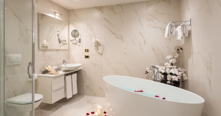 Acest hotel elegant de 4 stele oferă acces gratuit la spa mare, cu piscină interioară sărată, baie turcească, bio-saună, paturi cu apă, grotă de sare și zonă de relaxare.