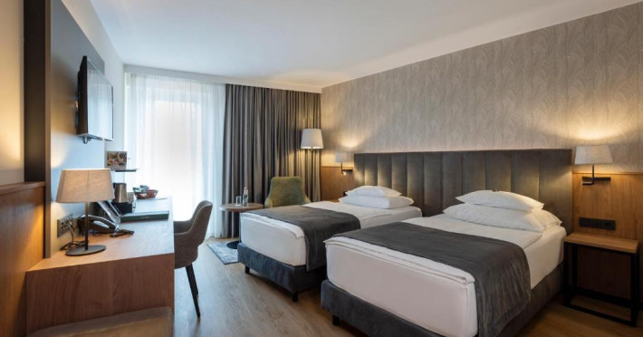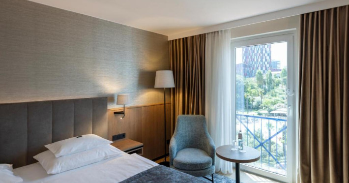 Toate camerele includ TV LCD cu canale prin satelit, paturi foarte mari, mini bar si birou. Camerele sunt amenajate cu lemn natural, ferestre mari si o zonă de relaxare, cu vedere la grădină sau la bulevard. Se oferă apă gratuită, precum si facilităti de ceai/cafea.