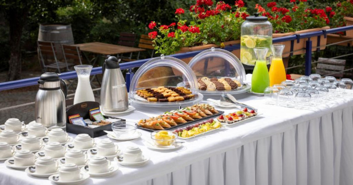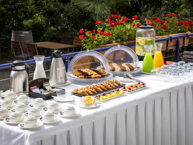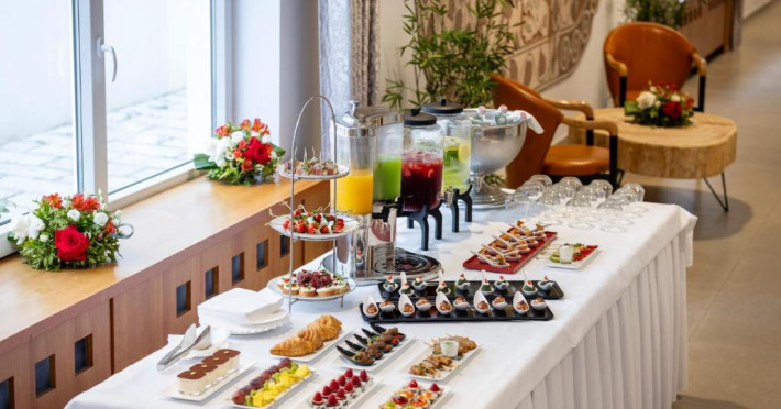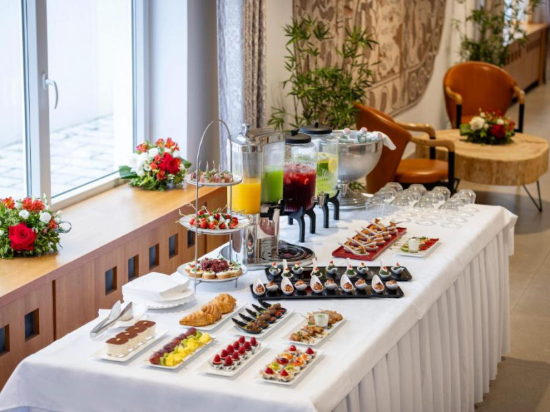 Restaurantul Hotelului Rogner Tirana oferă in fiecare dimineată un mic dejun tip bufet. Pentru masa de pranz si cină, oaspetii au la dispozitie o gamă largă de delicatese à la carte din bucătăria austriacă si mediteraneană, precum si din bucătăria locală.