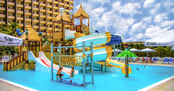 Facilitati hotel: receptie, restaurant, bar, piscina exterioara, piscina pentru copii, waterpark, centru Spa, animatie, loc de joaca, snack bar, sala de fitness, mini club,