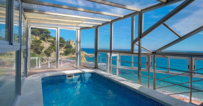 Piscina este de 3 x 2 m cu vedere la mare iar in sezonul de jos este acoperita si incalzita.