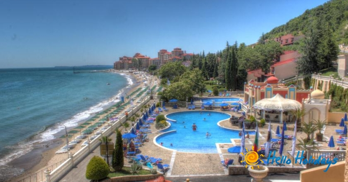 Hotelul Royal Bay este situat în satul de vacanţă Elenite de la Marea Neagră, orientat spre sud. Oferă camere cu aer condiţionat, vedere la mare sau la parc, TV prin satelit, minibar și uscător de păr. Oaspeții beneficiază de acces gratuit la parcul acvatic Atlantida. În holul hotelului este disponibil WiFi gratuit.
