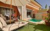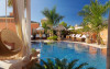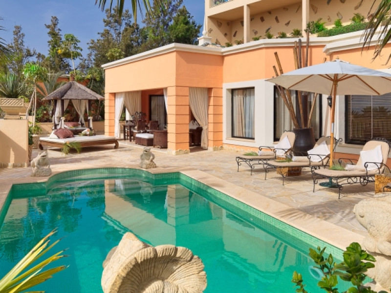 About 5,5 km from a beach and approximately 1 km from the sea is located the accommodation Hotel Royal Garden Villas. The nearest restaurants and bars can be found within 1 km. The old town is around 2,2 km away. The nearest shops you can reach within around 4,7 km, a supermarket is around 2 km away. There is a shuttle service between the hotel and the airport. On the beach are beach towels available. The air-conditioned hotel is equipped with a 24h reception (check-in is possible around the clock), a lobby bar, Wi-Fi, a lift, a hairdresser, a jacuzzi, showers and changing rooms, a first aid kit, parking spaces as well as a TV lounge with satellite TV. In the outdoor area you will find a garden as well as a heated pool that is open seasonally (open all year), where sun loungers, sun umbrellas and pool towels are available for free. Furthermore, you can relax outdoors on the sun terrace. You can store your valuables in the safe, and your luggage in the hotel`s storage room. For your entertainment, the hotel offers a disco. For very young guests, kid`s chairs, highchairs and cots can be provided. For the smallest children prams can be rented in the hotel. There is also a laundry and ironing service. For your comfort, in addition to the concierge service the hotel page will ensure you are looked after. If necessary, you can contact the medical centre at any time. Guests at the accommodation can get a wake-up call from the hotel personnel. The energy supply is 230 Volts. For conventions and other business meetings, the hotel offers a business centre as well as a conference area with a total of 40 seats, printer as well as overhead projector. If you want to explore the holiday region, you can use the car and motorbike rental service close to the hotel. At the hotel reception, tickets are offered for excursions in the area. For guests on their honeymoon, the hotel has special offers such as special honeymoon packages. In your hotel, a lot of focus is placed on sustainability. This includes among others organic food and ecological meals. The hotel requires that all guests pay a deposit upon arrival. Due to its barrier-free facilities , such as barrier-free entrances, wheelchair accessible rooms and wheelchair-accessible bathrooms, the hotel is also suitable for wheelchair users. Catering As catering services the hotel offers half board and breakfast only. Breakfast is offered continental, from the buffet, à la carte or as brunch (extras on request). Lunch and dinner are also served as a set meal or à la carte (extras on request and at extra cost). For the meals, there are a restaurant (Mediterranean, calorie-reduced, gluten-free and vegetarian dishes) and 2 bars as well as the pool bar. For dinner, guests are asked to wear appropriate clothing in the restaurant. Distances- Discotheque: approximately at 5,5 km