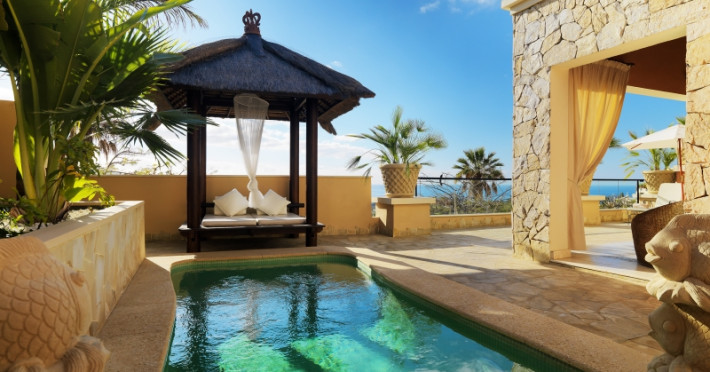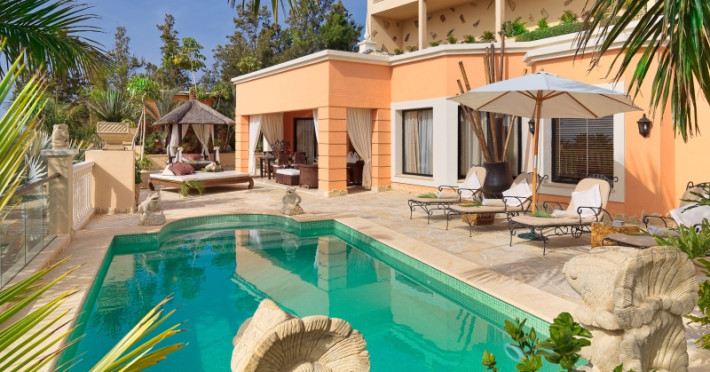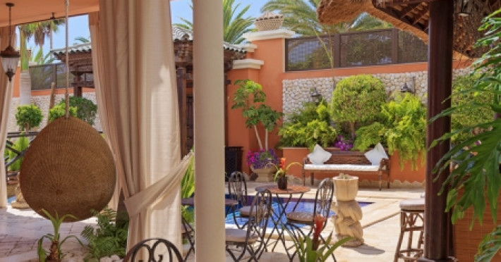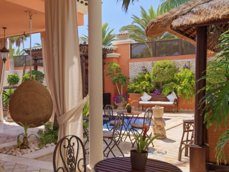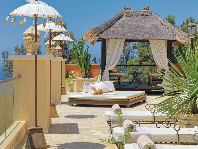About 5,5 km from a beach and approximately 1 km from the sea is located the accommodation Hotel Royal Garden Villas. The nearest restaurants and bars can be found within 1 km. The old town is around 2,2 km away. The nearest shops you can reach within around 4,7 km, a supermarket is around 2 km away. There is a shuttle service between the hotel and the airport. On the beach are beach towels available. The air-conditioned hotel is equipped with a 24h reception (check-in is possible around the clock), a lobby bar, Wi-Fi, a lift, a hairdresser, a jacuzzi, showers and changing rooms, a first aid kit, parking spaces as well as a TV lounge with satellite TV. In the outdoor area you will find a garden as well as a heated pool that is open seasonally (open all year), where sun loungers, sun umbrellas and pool towels are available for free. Furthermore, you can relax outdoors on the sun terrace. You can store your valuables in the safe, and your luggage in the hotel`s storage room. For your entertainment, the hotel offers a disco. For very young guests, kid`s chairs, highchairs and cots can be provided. For the smallest children prams can be rented in the hotel. There is also a laundry and ironing service. For your comfort, in addition to the concierge service the hotel page will ensure you are looked after. If necessary, you can contact the medical centre at any time. Guests at the accommodation can get a wake-up call from the hotel personnel. The energy supply is 230 Volts. For conventions and other business meetings, the hotel offers a business centre as well as a conference area with a total of 40 seats, printer as well as overhead projector. If you want to explore the holiday region, you can use the car and motorbike rental service close to the hotel. At the hotel reception, tickets are offered for excursions in the area. For guests on their honeymoon, the hotel has special offers such as special honeymoon packages. In your hotel, a lot of focus is placed on sustainability. This includes among others organic food and ecological meals. The hotel requires that all guests pay a deposit upon arrival. Due to its barrier-free facilities , such as barrier-free entrances, wheelchair accessible rooms and wheelchair-accessible bathrooms, the hotel is also suitable for wheelchair users. Catering As catering services the hotel offers half board and breakfast only. Breakfast is offered continental, from the buffet, à la carte or as brunch (extras on request). Lunch and dinner are also served as a set meal or à la carte (extras on request and at extra cost). For the meals, there are a restaurant (Mediterranean, calorie-reduced, gluten-free and vegetarian dishes) and 2 bars as well as the pool bar. For dinner, guests are asked to wear appropriate clothing in the restaurant. Distances