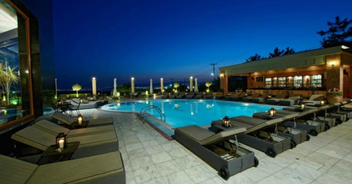 Oferă un restaurant select, o piscină în aer liber cu bar,Restaurantul cu vedere la piscine şi la golful Thermaikos serveşte mâncăruri rafinate, pregătite de bucătarul-şef al hotelului. Hotelul oferă şi meniuri complete servite în cameră.