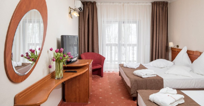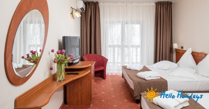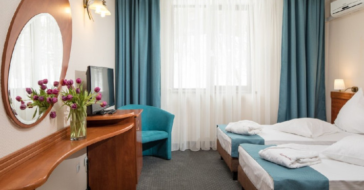 Camera standard este decorata intr-o maniera simpla si eleganta. Camera este luminoasa, spatioasa, are televizor propriu, minibar si wireless gratuit in camera. Baia este dotata cu dus, uscator de par si articole de baie.